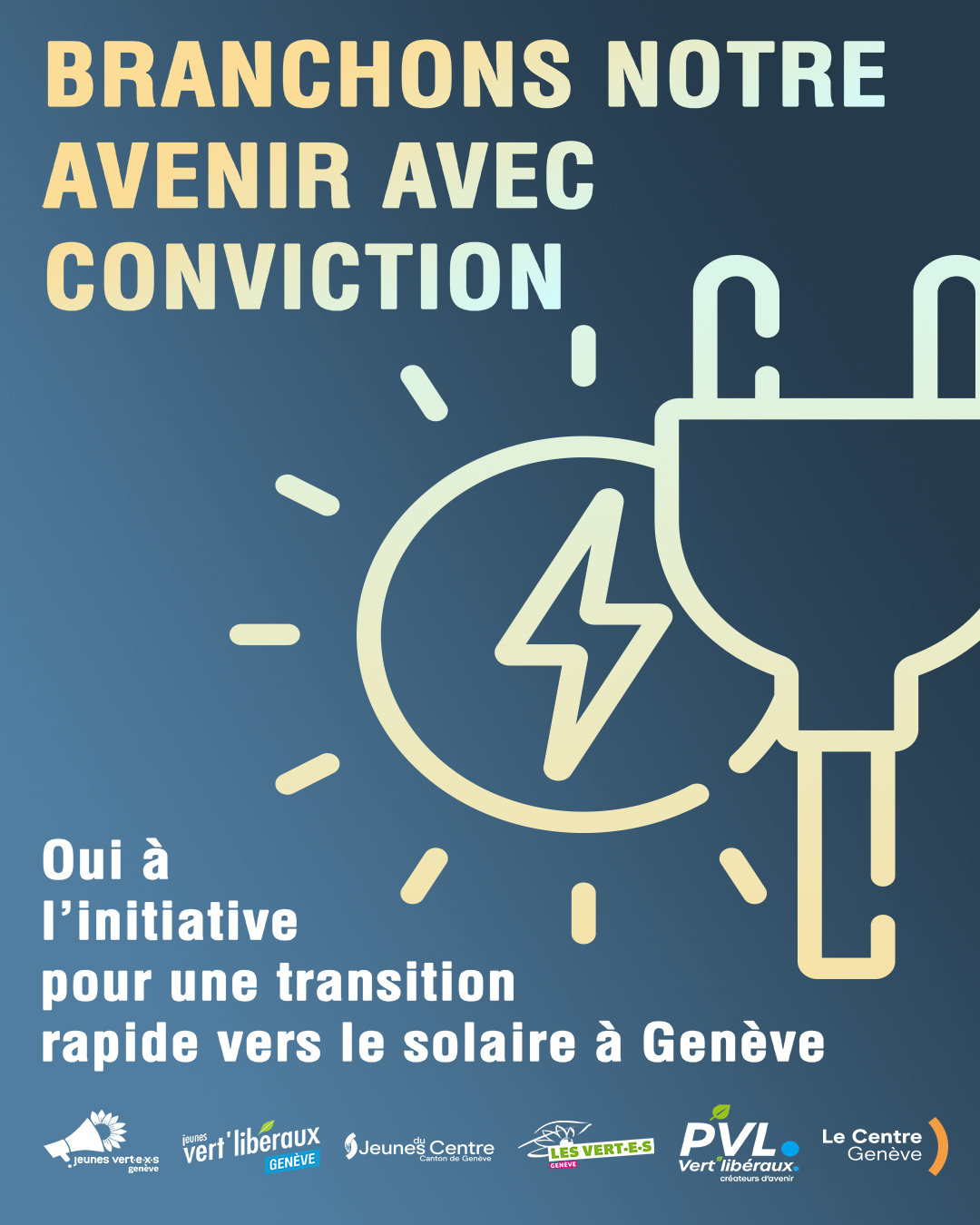 Le PVL Genève, Les Vert·e·s Genevois·es et Le Centre Genève s’engagent conjointement en faveur de l’initiative “pour une transition rapide vers le solaire” soumise au vote le 18 mai prochain. Les trois partis soulignent l’importance stratégique du développement de l’énergie solaire, afin d’accélérer la transition et de renforcer l’indépendance énergétique.